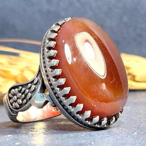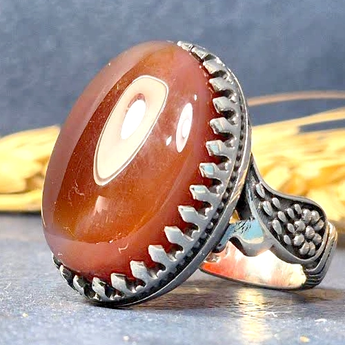 نقره خالص با عیار 925 و نگین سنگ عقیق سرخ