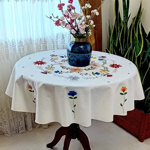 رومیزی گرد پارچهای طرح گل داوودی یک محصول هنری و چشمنواز است که با تکنیک نقاشی روی پارچه طراحی شده و جلوهای خاص به میز پذیرایی یا دکوراسیون منزل شما میبخشد. این رومیزی از پارچه متقال سفید تهیه شده و تمامی نقشها بهصورت کاملاً دستی اجرا شدهاند؛ بنابراین هر قطعه هویت منحصربهفرد خود را دارد و با نمونههای چاپی قابل مقایسه نیست. قطر ۸۸ سانتیمتری این رومیزی، آن را برای استفاده روی میزهای گرد، میز جلو مبلی یا حتی بهعنوان المانی دکوراتیو مناسب میکند. همچنین قابلیت شستشو باعث میشود بدون نگرانی از آن در استفاده روزمره بهره ببرید. اگر به دنبال ترکیبی از هنر، کیفیت و کاربرد هستید، این رومیزی دستساز میتواند انتخابی متفاوت و جذاب برای فضای خانه شما باشد؛ همچنین گزینهای عالی برای هدیه دادن به افرادی است که به محصولات هنری و خاص علاقه دارند.